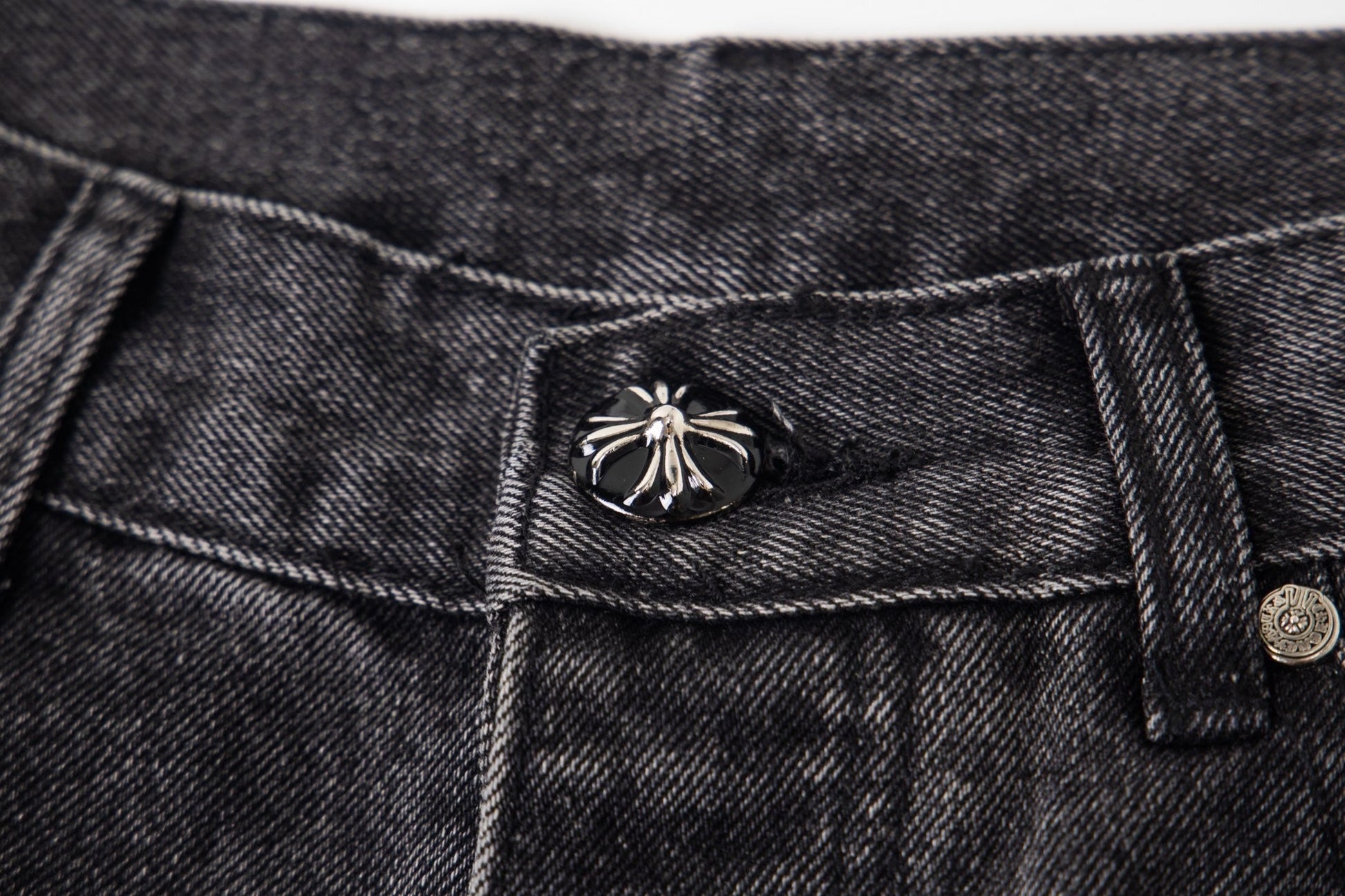 Chrome Hearts Multi Cross Patch Denim Jeans - Grey Gothic Street Pants 1111
